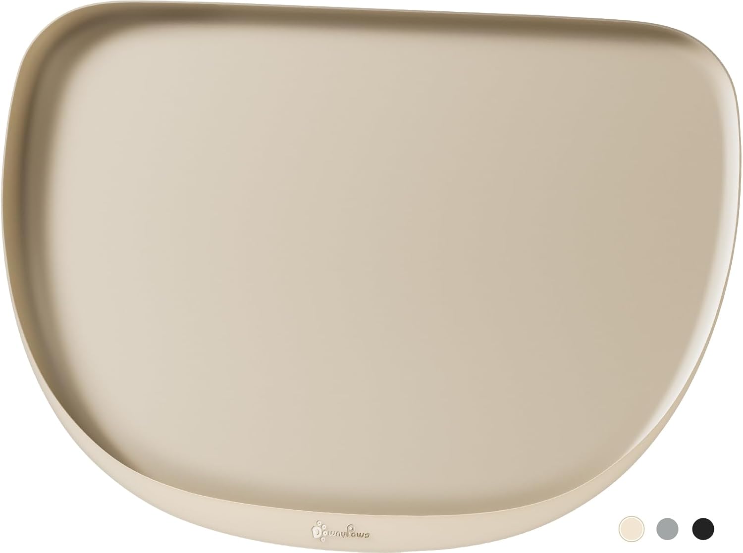 DownyPaws Dog Food Mats for Floors Waterproof, BPA Free Silcone Dog Bowl Mat, Non-Slip Pet Feeding Mat with High Raised Edge, Cat Placemat for Messy Drinkers, 24"×17", Almond