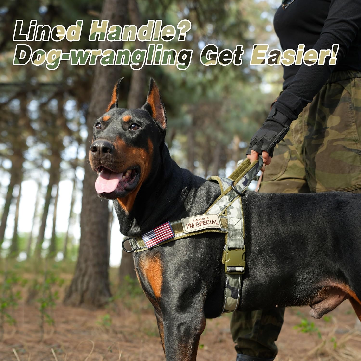- Swappable Patches: Newly Forestpaw tactical dog harness has a long velcro area,paired with 3 patches, you can put the patches "MAMA SAY I'M SPECIAL" or the flag on it to make your dog more eye-catching and handsome when outdoor training