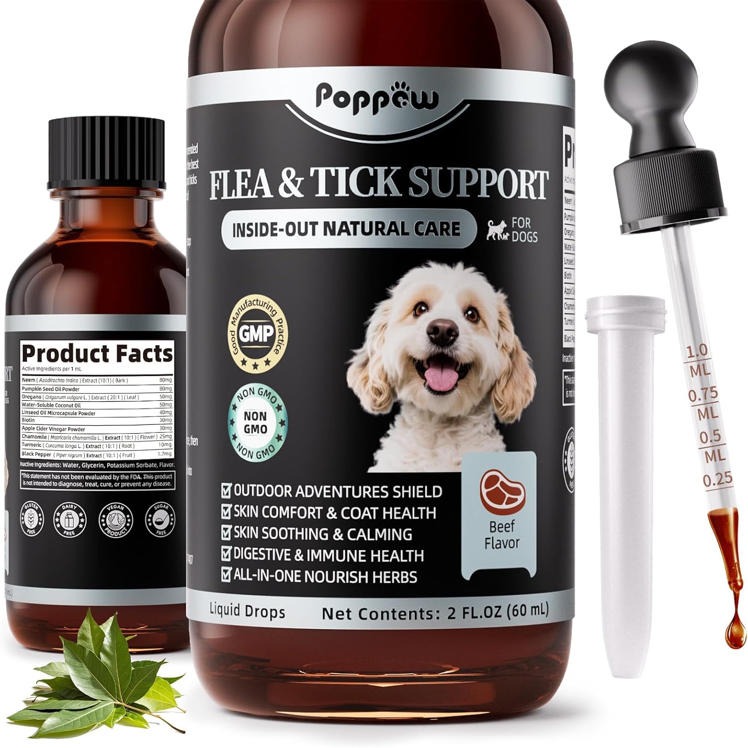 - Dog Herbal Skin & Coat & Outdoor Support: A natural flea and tick prevention support for dogs, helping nourish skin and coat from within. POPPAW’s plant-based oral flea and tick drops provide gentle daily care, supporting comfort, balance, and wellness for all breeds.