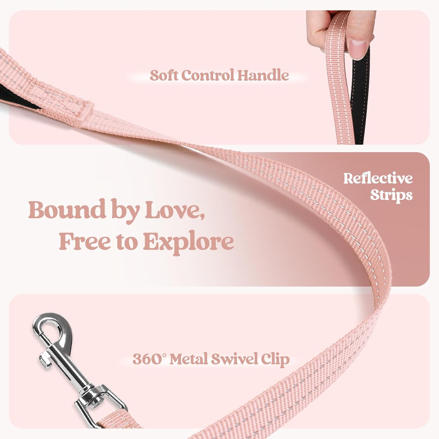 - Dog Harness with Leash Set:The color-matching harness and leash with reflective bands make it fashion and visible for pet outing. The leash is 5.15ft in length, with an anti-tangling clip and a palm-friendly handle
