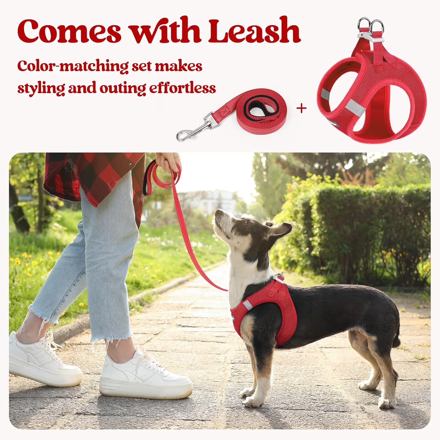 rabbitgoo Dog Harness Small Sized and Leash Set, Step in Soft Light Puppy Vest, Breathable Mesh Pet Harness, Reflective for Safe Easy Walking, Red S