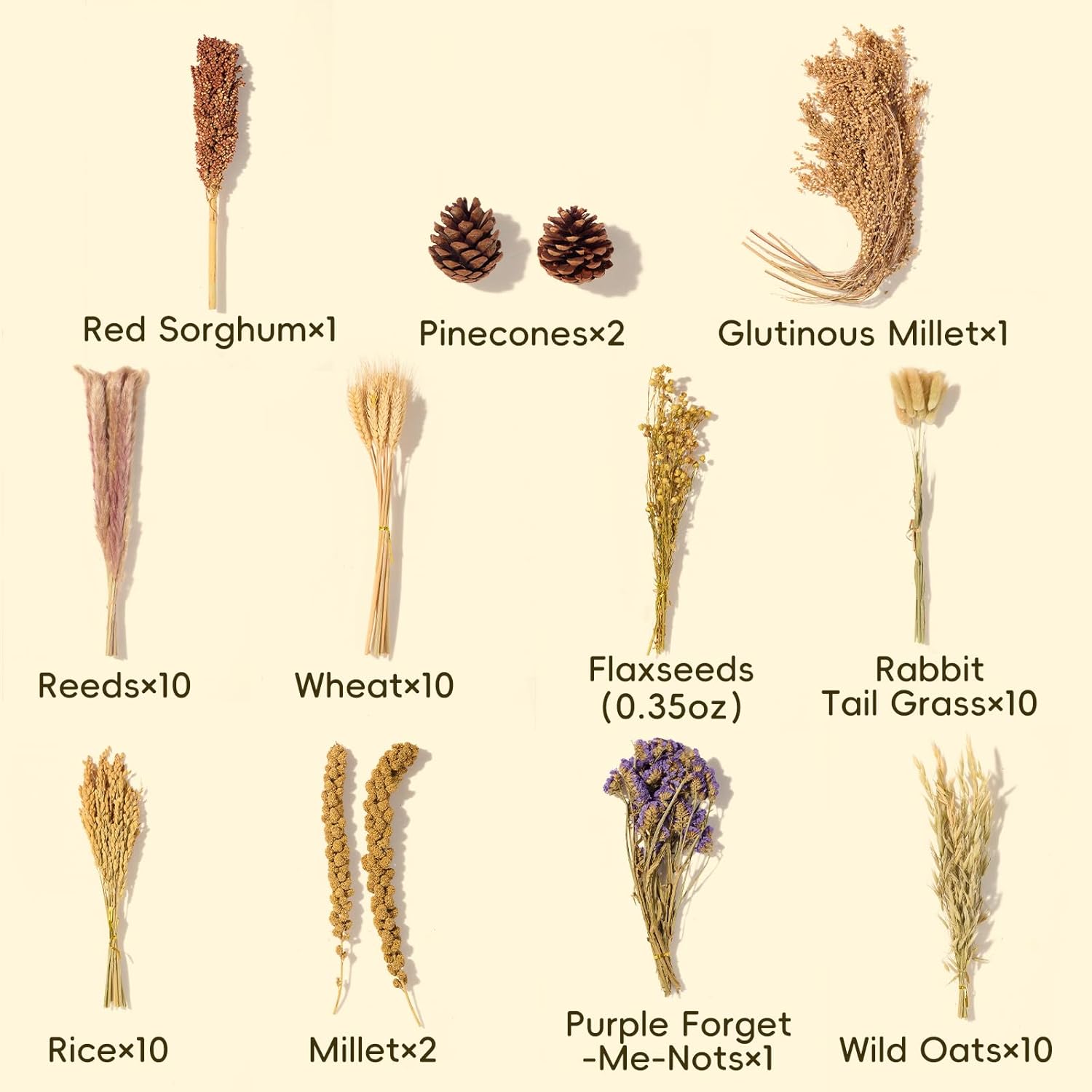 - ✅【Rich Natural Ingredients for Safety and Fun】Crafted with over 10 natural ingredients—including reeds, wheat, rice stalks, rabbit tail grass, wild oats, purple forget-me-nots, glutinous millet, red sorghum, pinecones, and millet—this blend contains no additives or artificial fragrances. It offers a safe and chewable material for small pets, while diverse shapes and textures stimulate their natural instincts to explore and play.