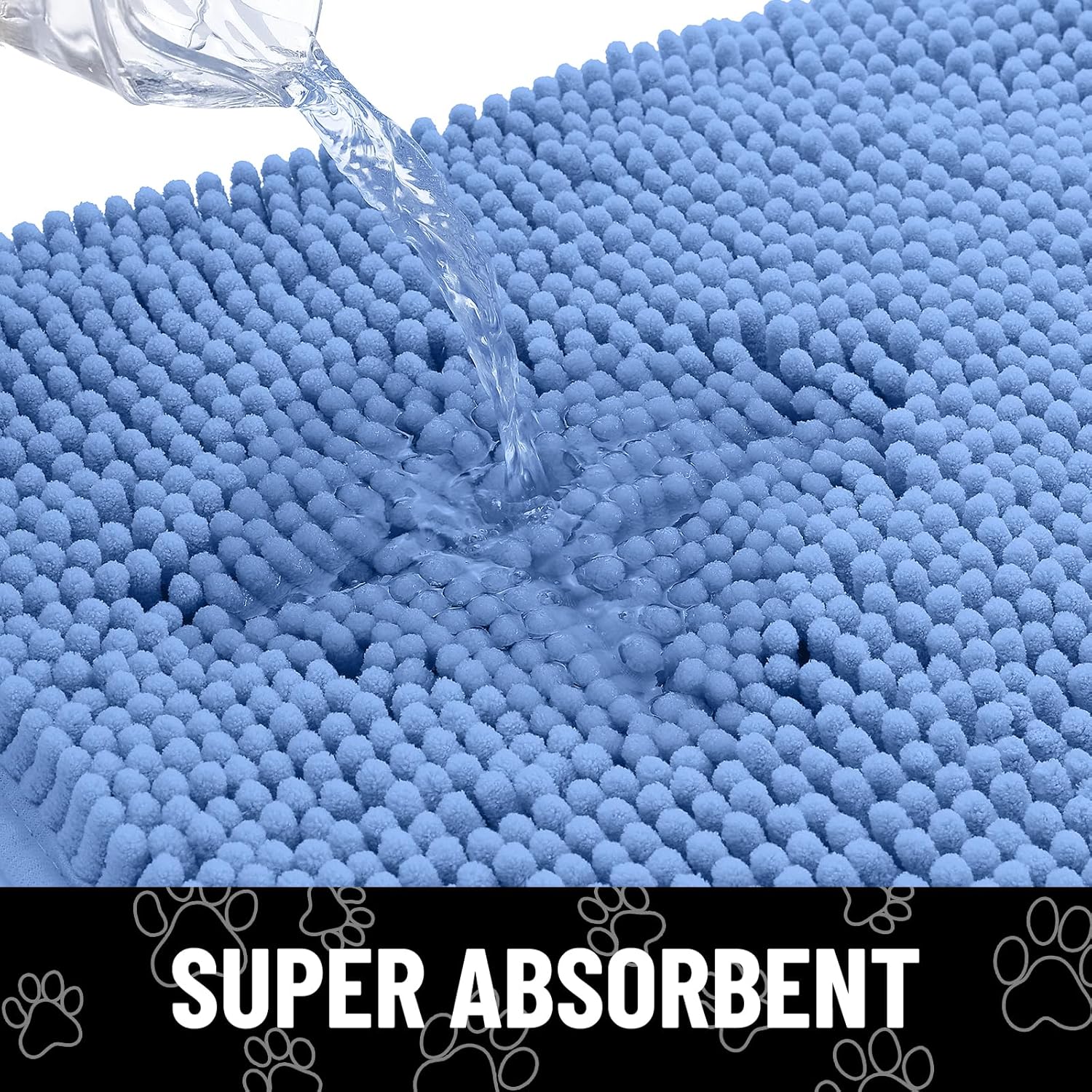 Smiry Dog Door Mat for Muddy Paws, Absorbent Dirt Trapper Non Slip Quick Dry Washable Chenille Mat for Mud Dogs, Entry Rug for Indoor and Outdoor (30x20 Inches, Cornflower Blue)