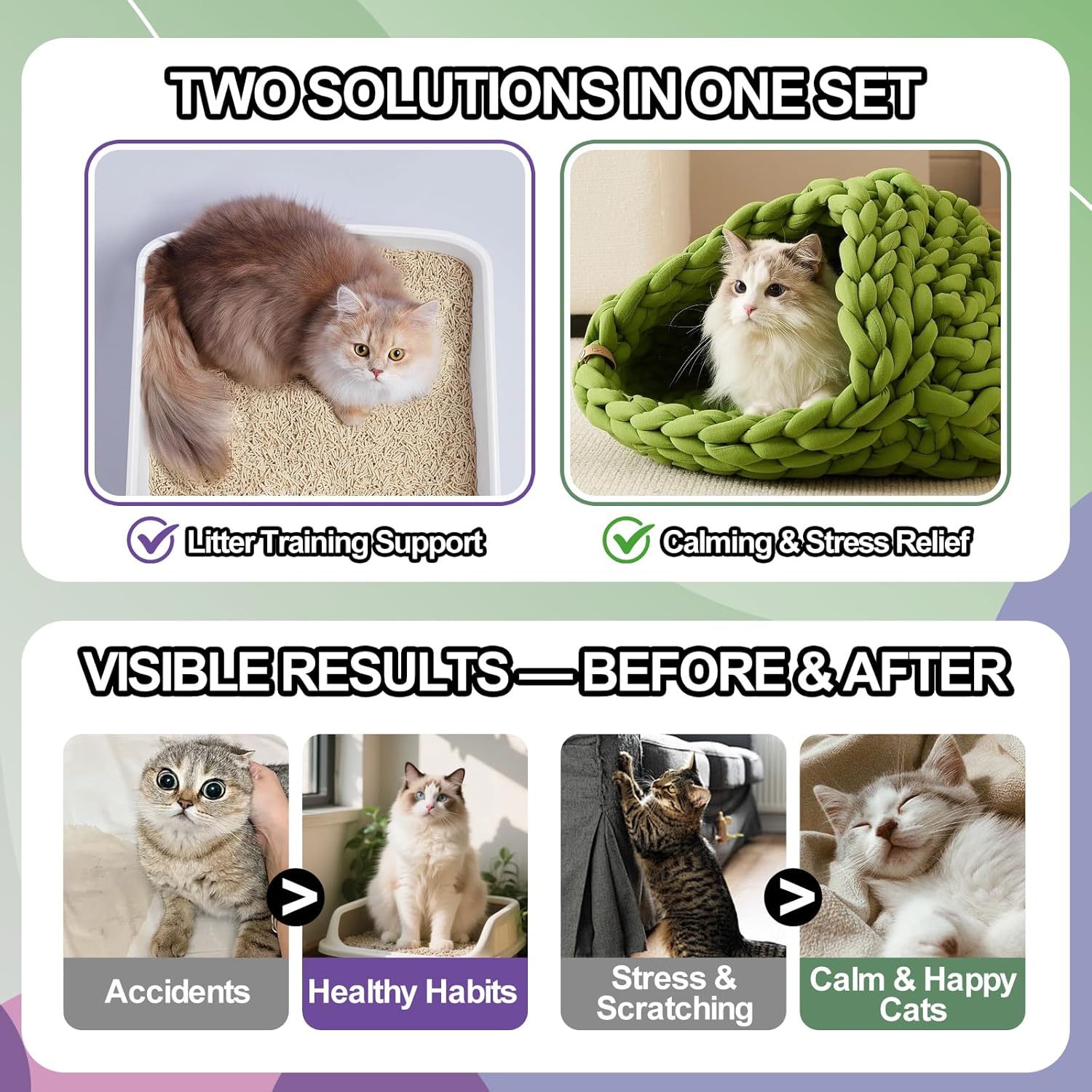 - 【2-in-1 Comfort & Training Solution for Cats】 This Cat Comfort Duo includes two essential sprays: a Catnip Calming Spray to help relieve stress and a Litter Box Attractant to guide proper bathroom habits. Designed for multi-cat homes, new kittens, or rescue pets adjusting to new environments.