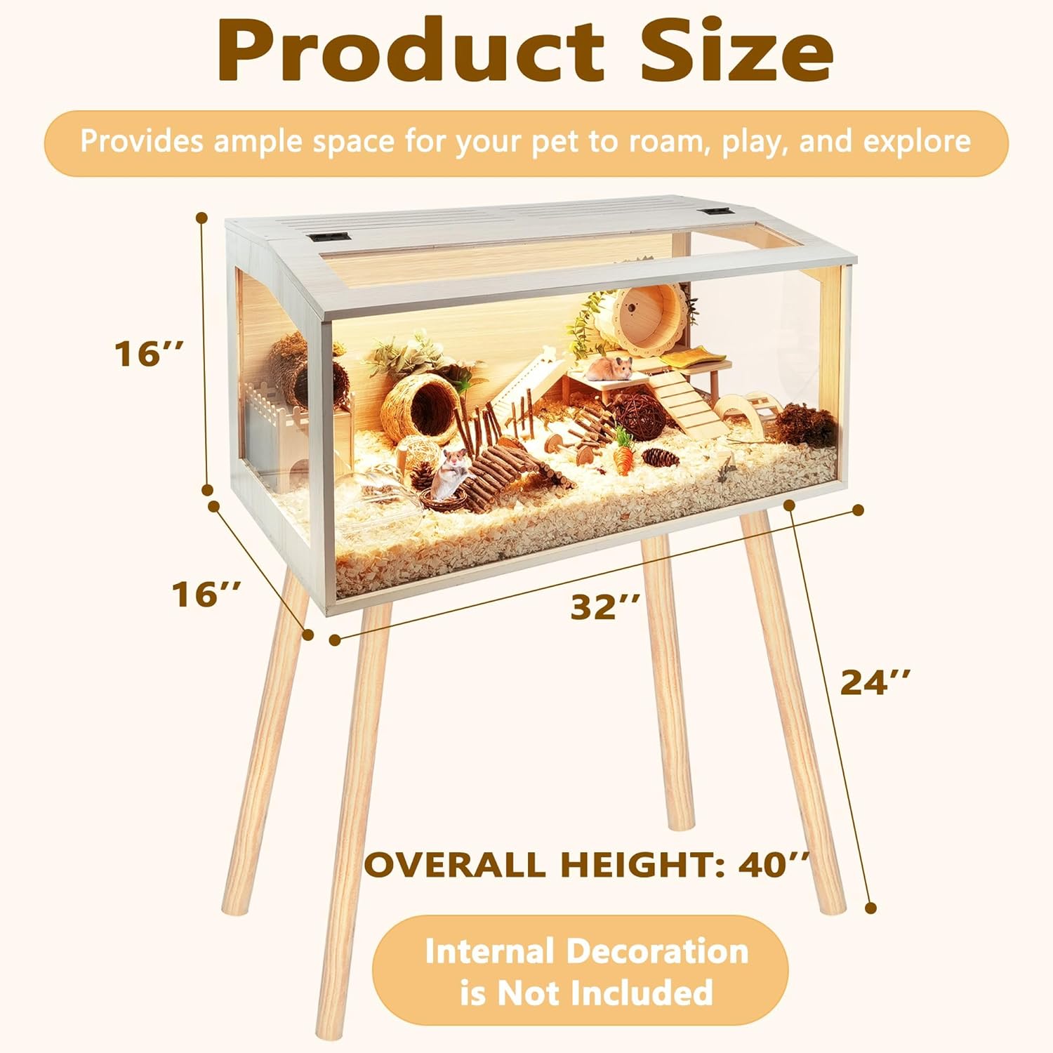 Prolee Hamster Cage with Legs Chew Proof Hamster Habitat Guinea Pig Cages, Hamster House, Hamster Cages and Habitats (32" L x 16" W x 40" H, Thick Wood Roof)