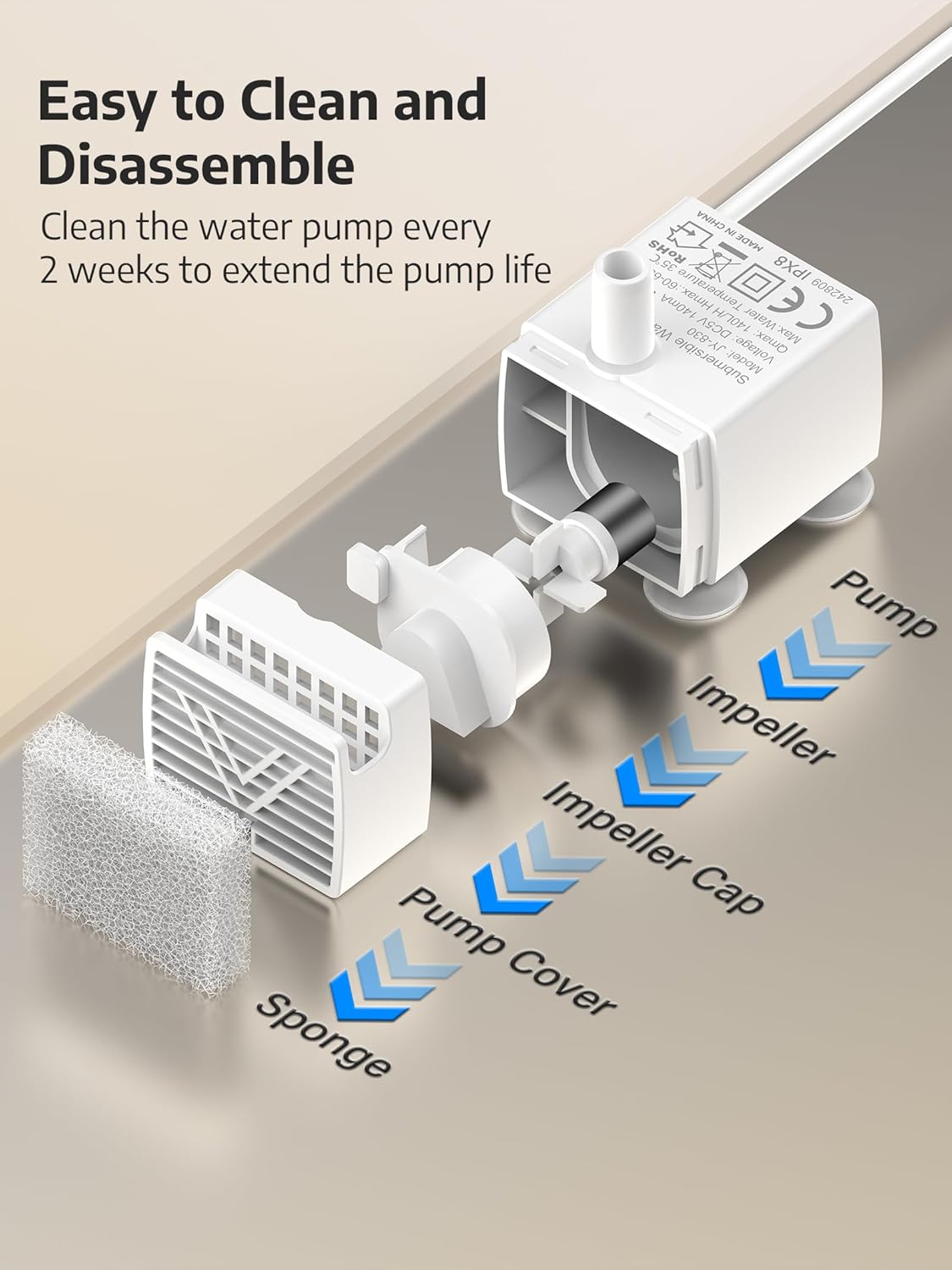 - Whisper Quiet Water Pump: Our low-noise pump of large pet water fountain operates at ≤25 dB, allowing a gentle smooth sound not to cause disturbance and creating a natural water source.
