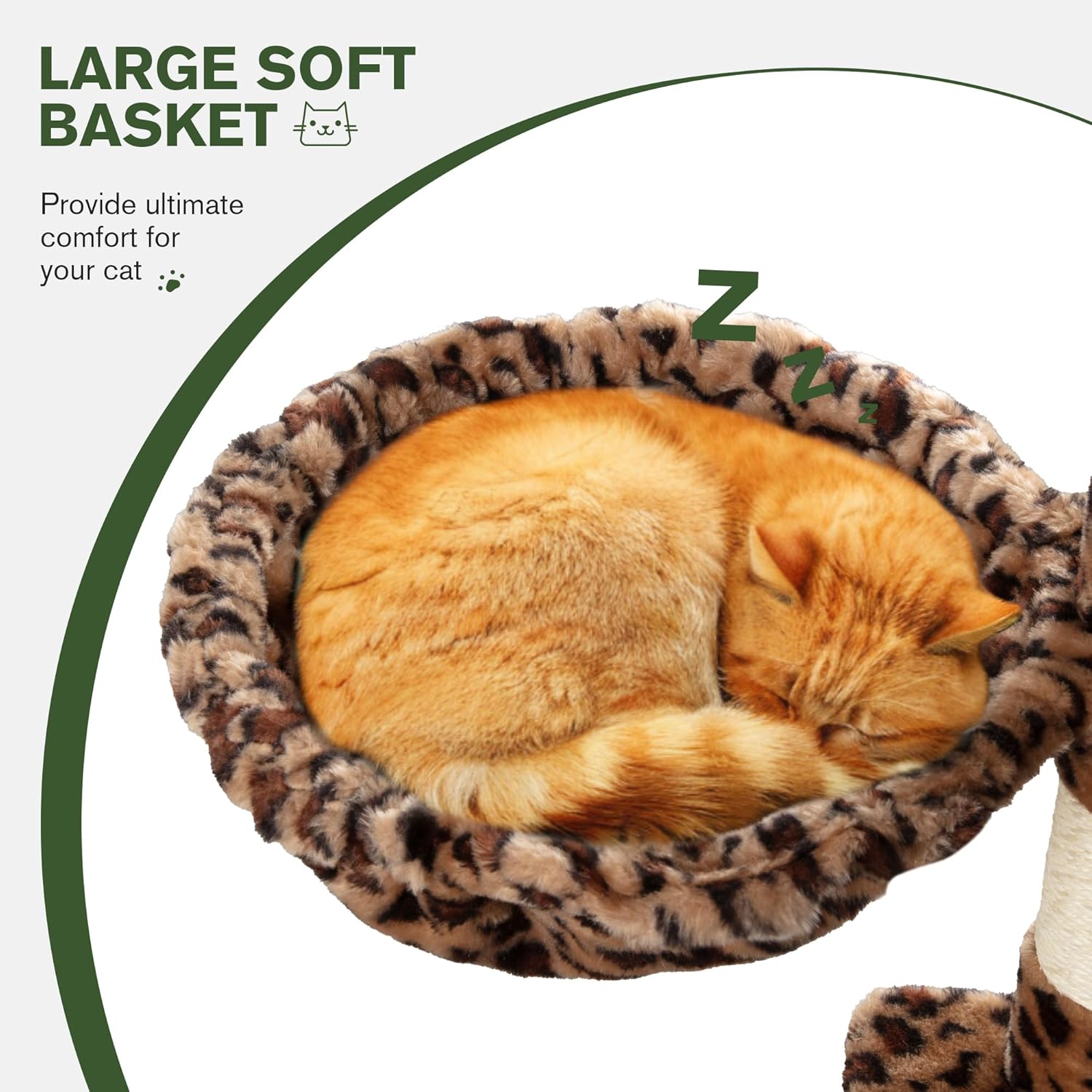 - Large-Top Perch: This Deluxe Cat Tree features an oversized perch that provides plenty of room for big cats to fully stretch out and relax, and the thick and wrapped platform provides strong support when cats rest their furry heads on top