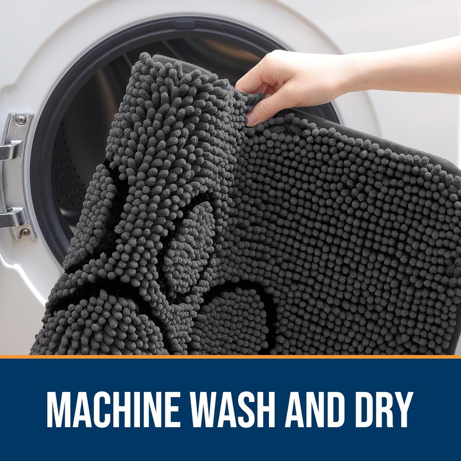 OLANLY Door Mat for Muddy Dog Paws 30x20, Absorbent Chenille Doormat with Paw Print Design, Non-Slip Washable Doormat for Indoor Entryway, Quick-Dry Pet Bed Mats for Dirty Dogs, Dark Grey and Black