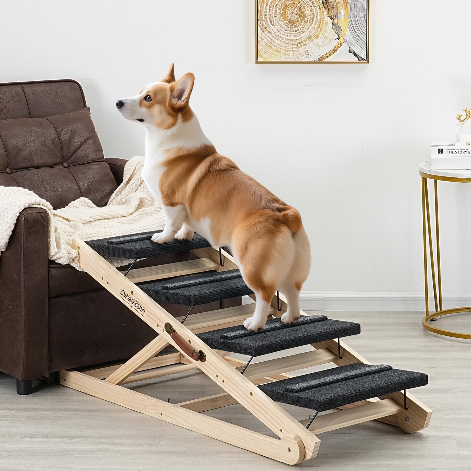 - ✅ANTI-SLIP SAFETY FEATURES - Our wooden dog ramps are thoughtfully crafted to alleviate muscle and joint strain. The non-slip fabric cover provides traction for pets' paws, with 4 anti-slip crossbars preventing sliding on inclines. Designed with bottom anti-slip pads, our pet steps offer protection for your floors.