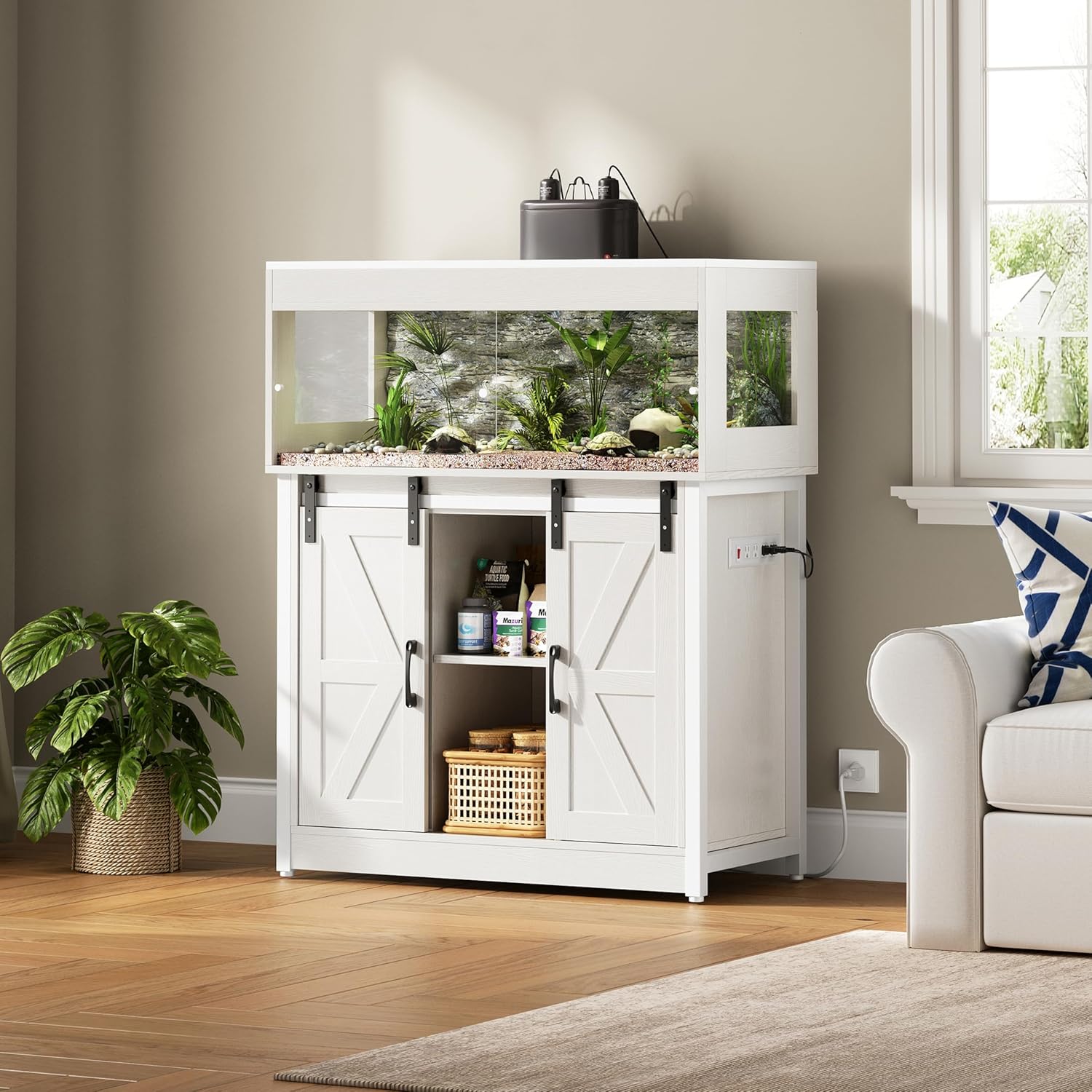 40 Gallon Reptile Terrarium with Stand, Reptile Tank with Barn Door and Storage, Vivarium with Acrylic Doors, Ventilated Mesh Top & Power Outlet, for Geckos, Lizards, Snakes White PX06RTW