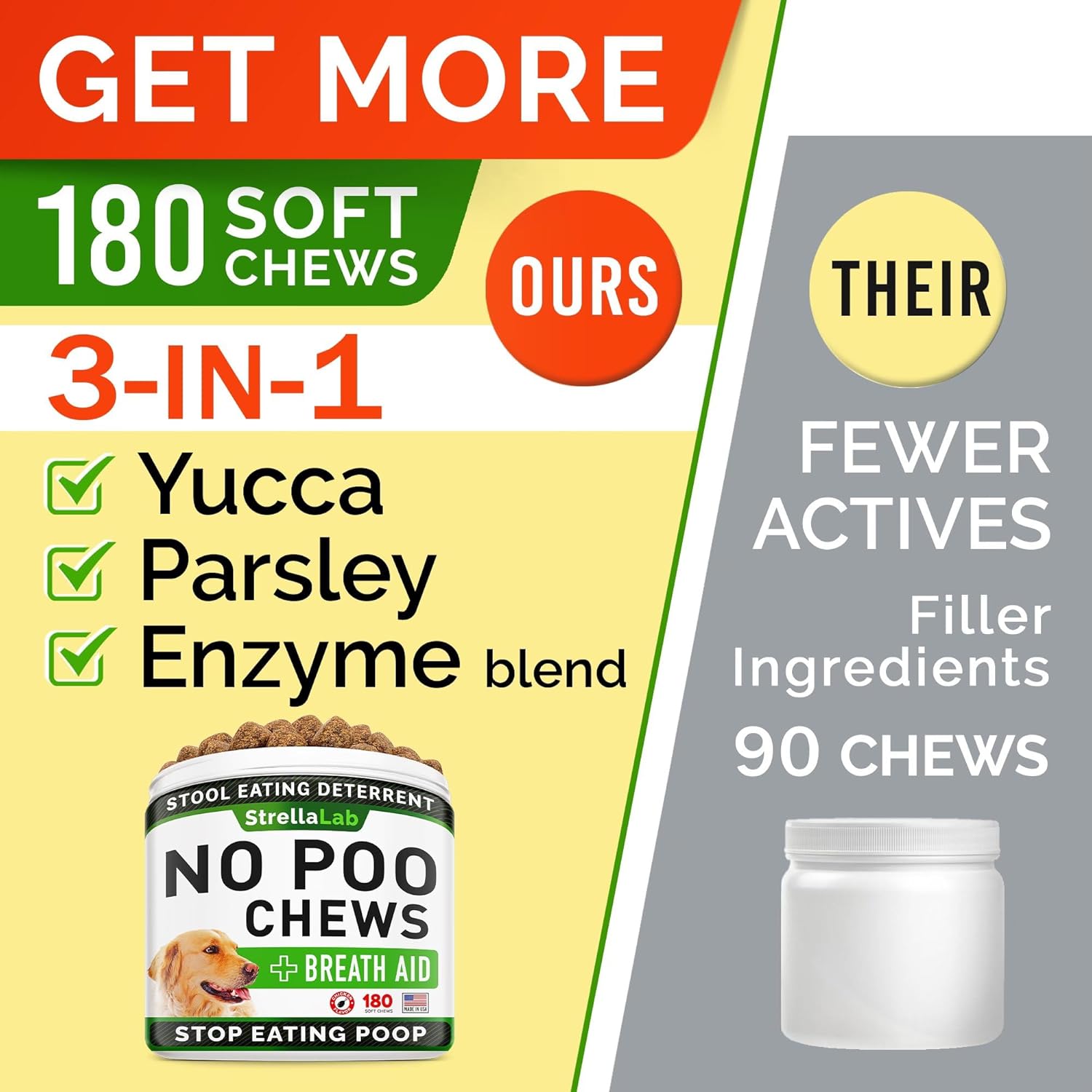 - Delicious & Easy to Administer: These tasty dog eating poop deterrent chews are stress-free and irresistible to dogs. Simply add them to your dog's daily routine for effective results without fuss