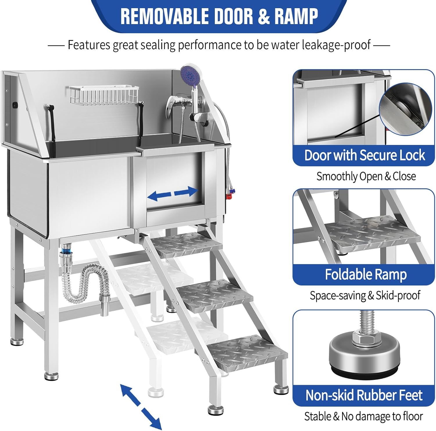 Professional Dog Washing Station, Stainless Steel Dog Bathing Station, Dog Wash Station, Storage Drawer, Upgrade Parts, Home, Commercial,34" R-RAMP