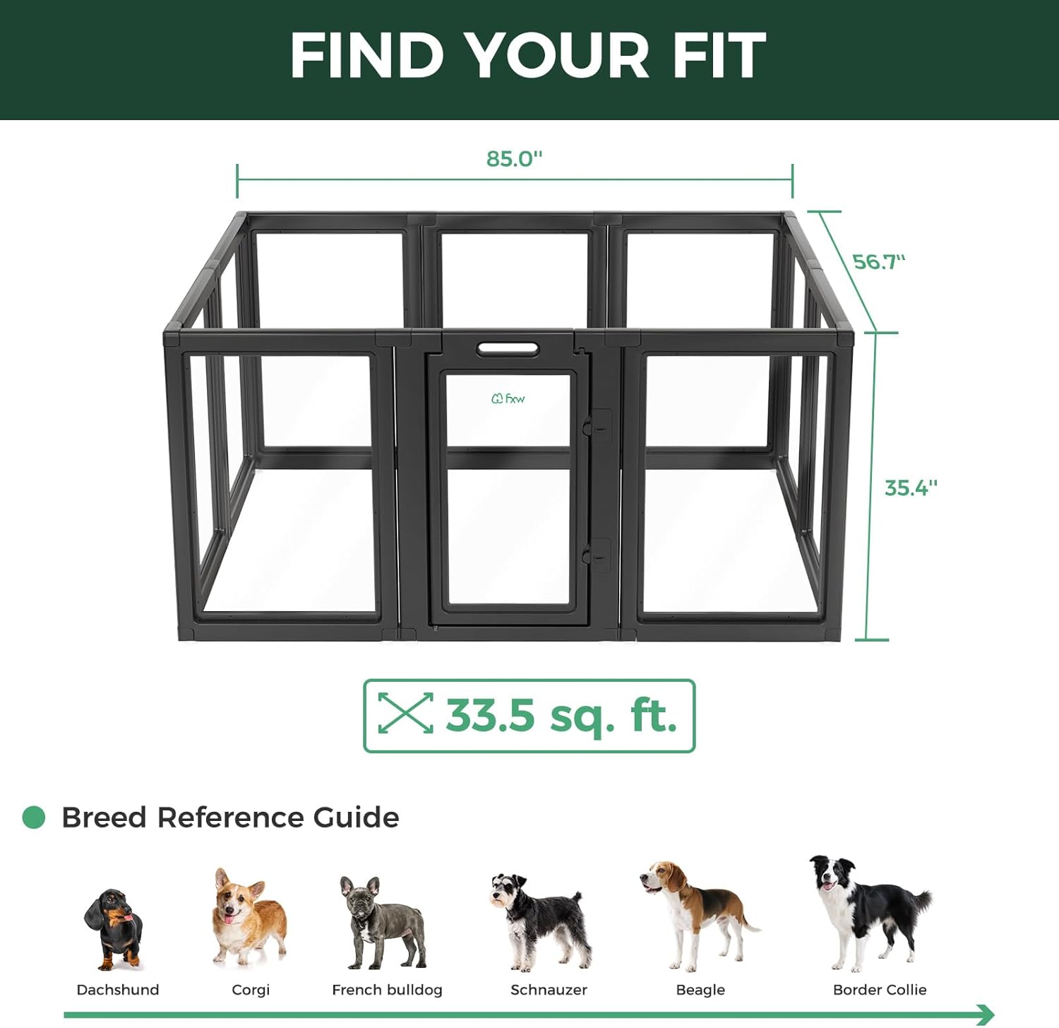 FXW AuraSpace Acrylic Indoor Unleashed Dog Playpen for Medium Dogs, 35 Inch, 10 Panels, Black
