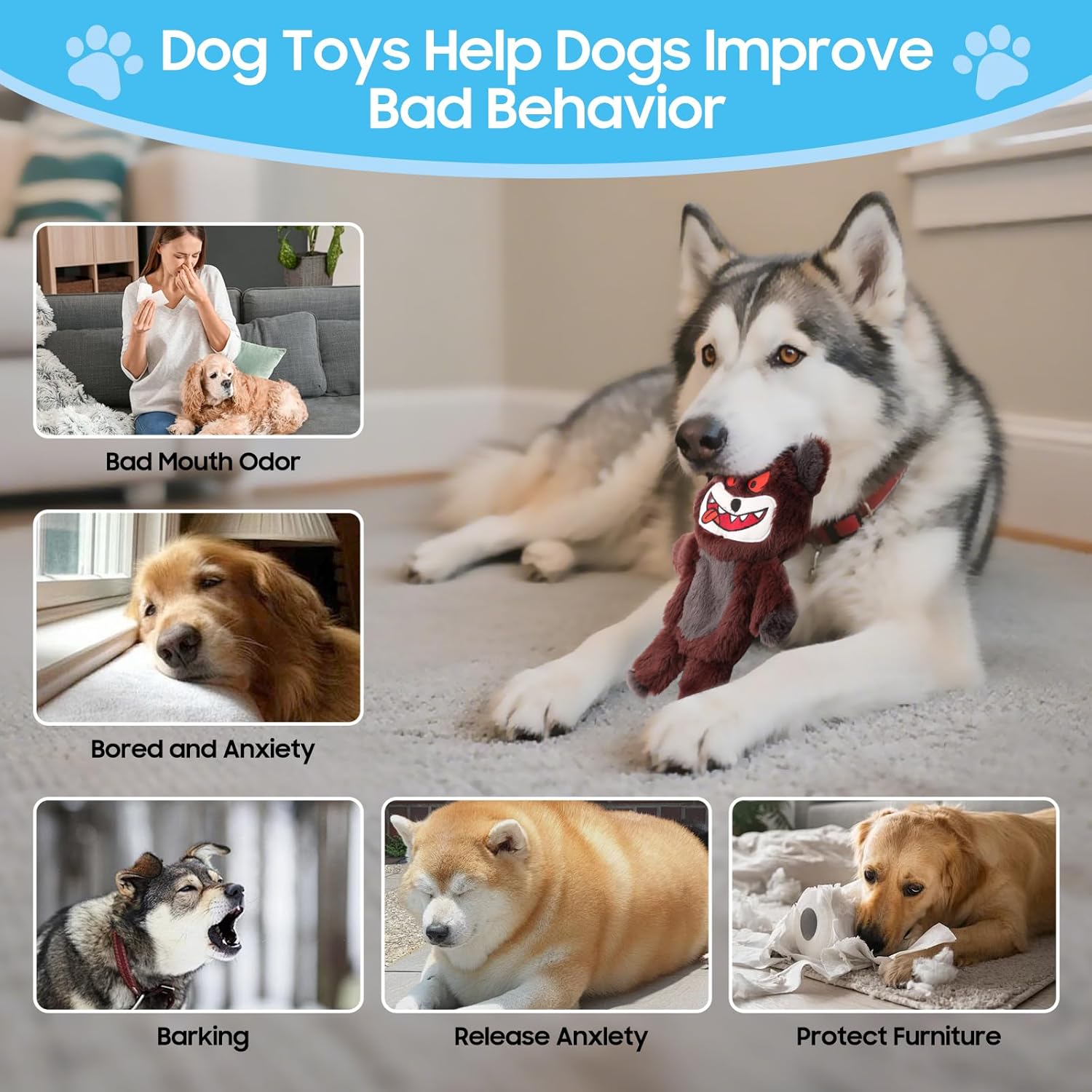 - Crinkle & Squeaky Dog Toys—Our dog toy has a squeaker in its head and crinkle material in its body—your pup will get satisfying squeaks as they chew, keeping them entertained for longer play sessions. It sparks your dog’s natural play drive, eases loneliness, cuts down on unwanted chewing and barking, and helps them release pent-up energy.