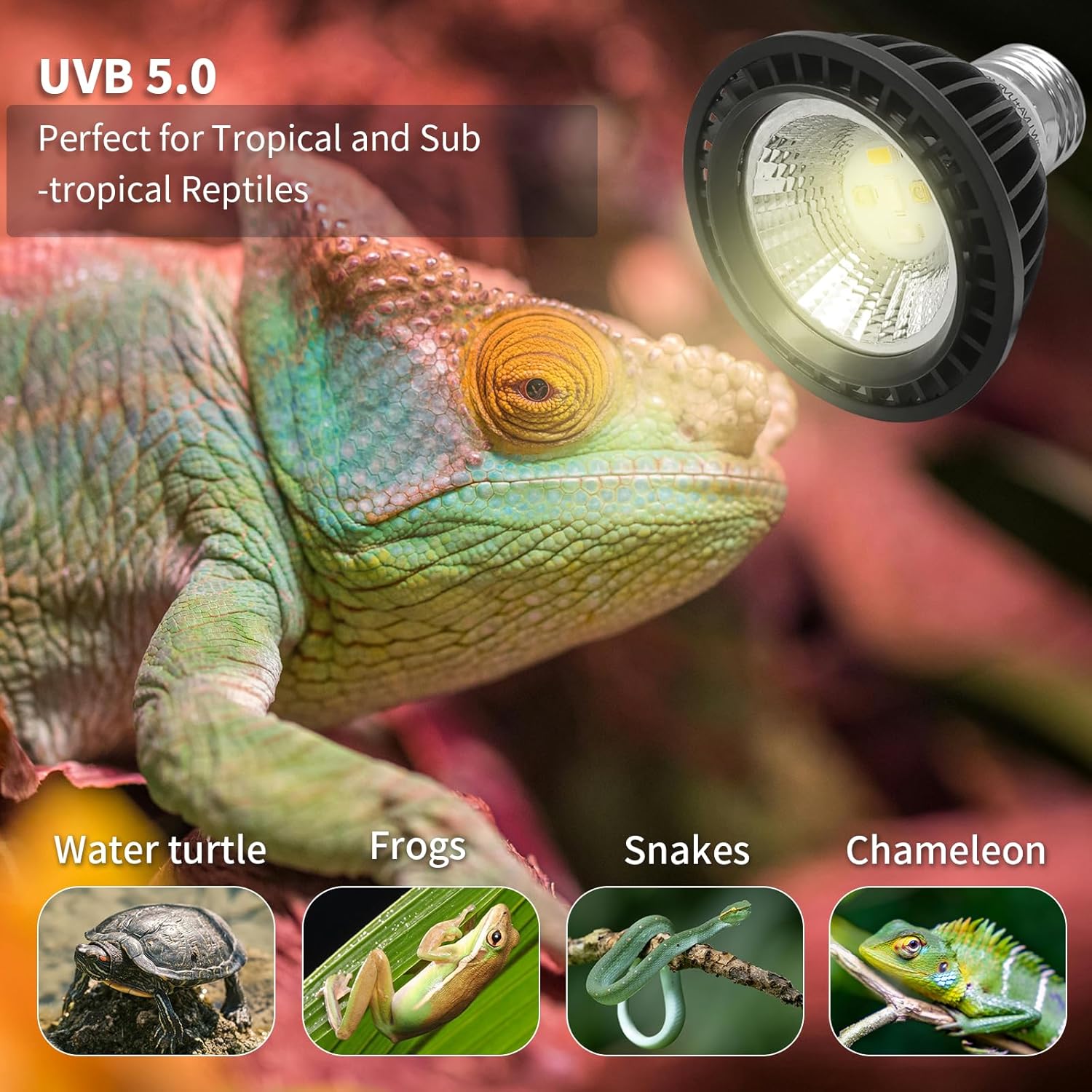 - Suitable for Tropical Desert Reptiles: The UVB 10.0 reptile light bulb is suitable for tropical desert reptiles, including bearded dragon, tortoises, geckos, snakes, iguanas, lizards, chameleons & more. Taking a few hours of UVB light every day can greatly enhance the vitality of reptile pet crawling and prevent and treat diseases