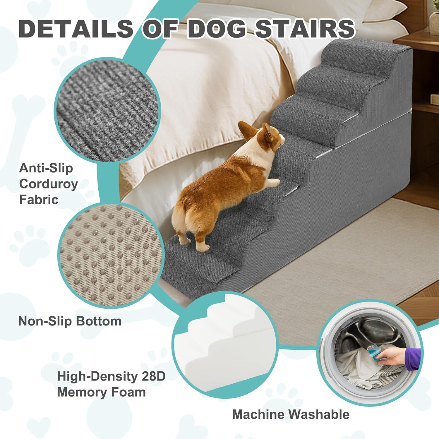 - Quick Installation & Easy Cleaning: Vacuum compressed for packaging, the dog stairs fully expand within 24-72 hours. The removable, liquid-resistant cover is easy to unzip and clean, perfect for washing away pet hair, stains, or messes