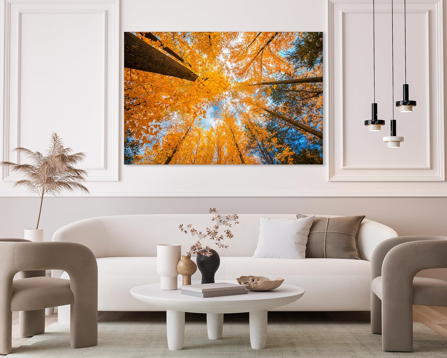 Nature Wall Art Prints - Ocean Forest Mountain Lake Canvas Landscapes - Small to Extra Large Living Room Bedroom Kitchen Bathroom Décor (Blue Sky Through Yellow Autumn Trees, 28L" x 41W")