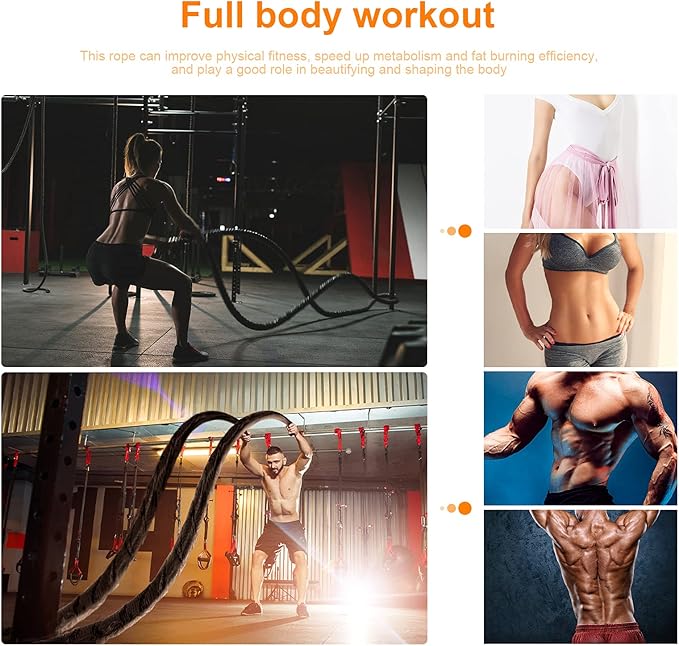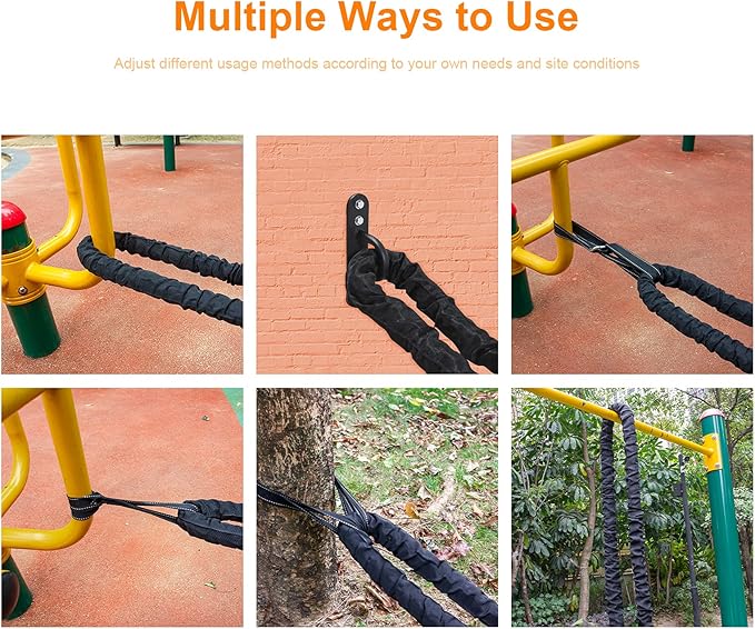 - Exercise Rope is Easy to Use: Whether it is a home gym or outdoor exercise, the workout equipment is a good choice. The training rope can be used alone or as part of a team for ups and downs, pulling or climbing sports-combat rope, sports rope, training rope, combat rope, fitness rope, heaving rope, adjusting rope, climbing rope, competition rope, etc. If it is Outdoors, you can directly use accessories to bind to trees, fixed posts, or outdoor fitness equipment