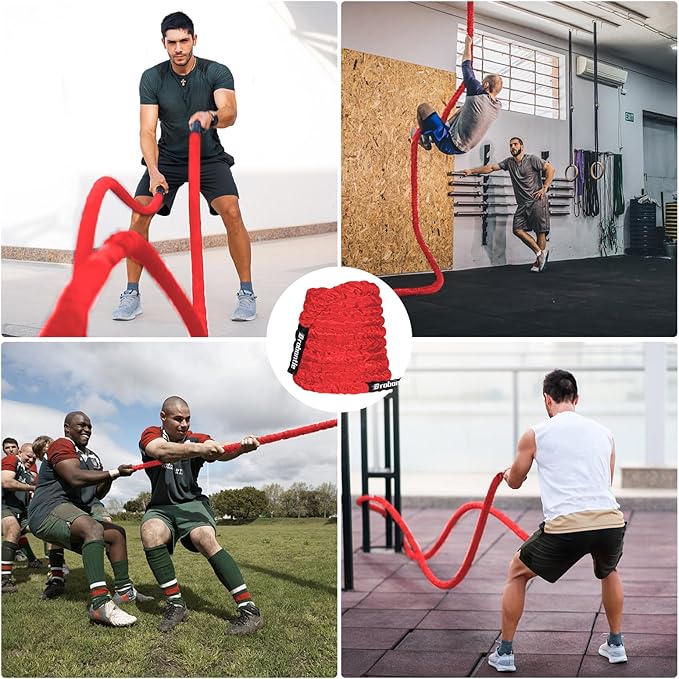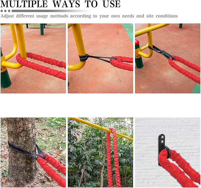 - Exercise Rope is Easy to Use: Whether it is a home gym or outdoor exercise, the workout equipment is a good choice. The training rope can be used alone or as part of a team for ups and downs, pulling or climbing sports-combat rope, sports rope, training rope, combat rope, fitness rope, heaving rope, adjusting rope, climbing rope, competition rope, etc. If it is Outdoors, you can directly use accessories to bind to trees, fixed posts, or outdoor fitness equipment