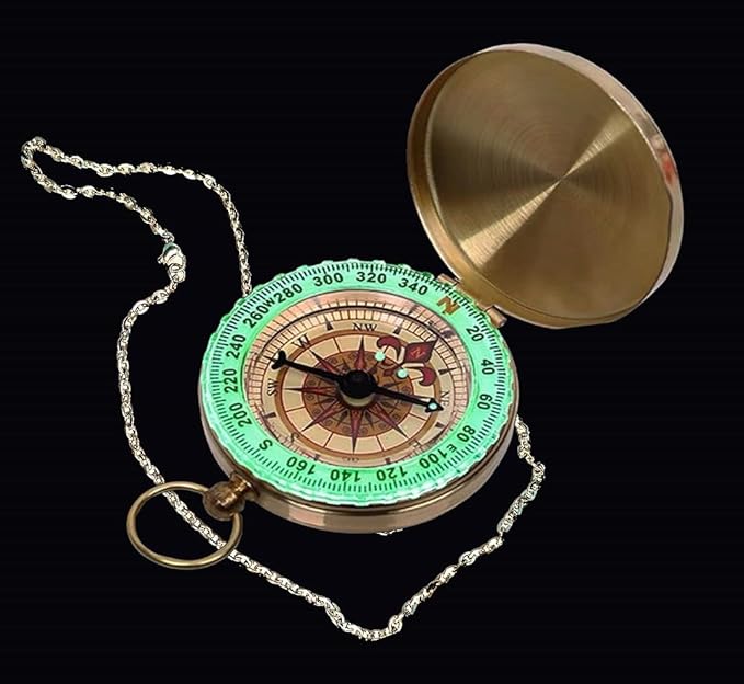 - The compass features a luminous dial that glows in the dark after being exposed to natural or artificial light, making it easy to use in low-light or night-time conditions. This feature ensures that you can always rely on the compass, even in low visibility situations. Simply expose the compass to light for a few minutes and it will remain illuminated for hours.