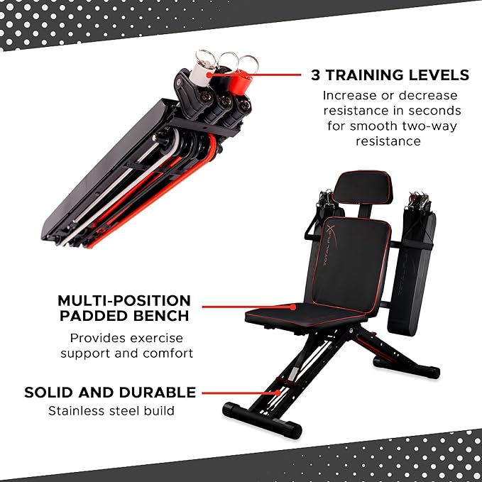 - Foldable, Compact & Portable: This foldable bench press features a carry handle and a suitcase like compact design. Making it the perfect portable home gym. Arrives almost completely assembled.