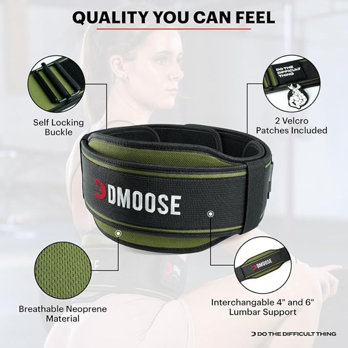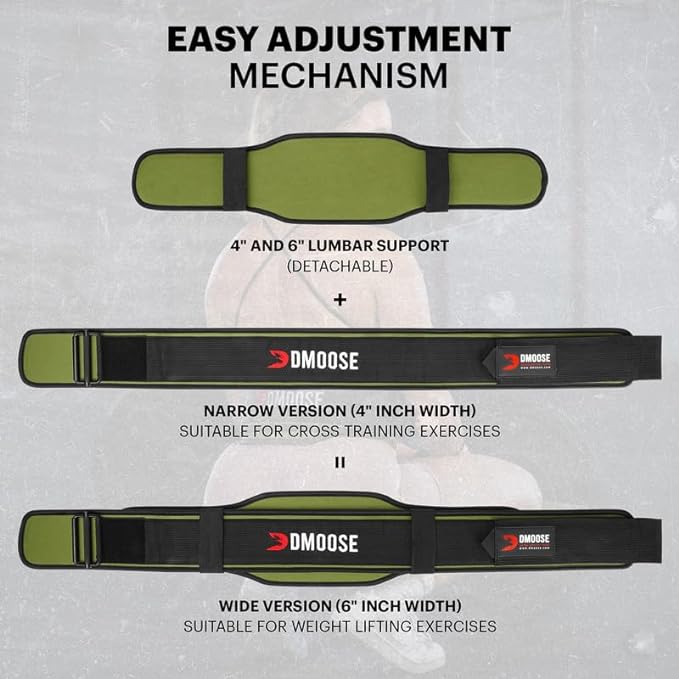 DMoose Weight Lifting Belt for Men & Women 2 in 1 Adjustable 4" 6" 6" Width
