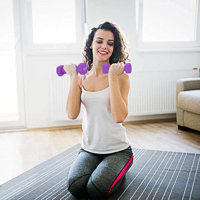 - 🔘HIGH-QUALITY CAST IRON COATED WITH NEOPRENE: Made with durable cast iron and coated with high-quality neoprene, these dumbbells offer a secure and comfortable grip. The neoprene coating not only makes them easy to hold but also protects the dumbbells and the floor from damage.
