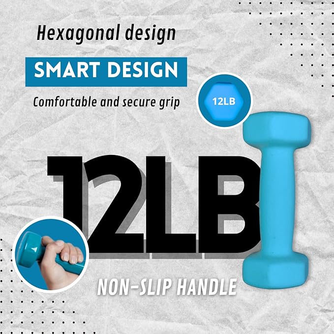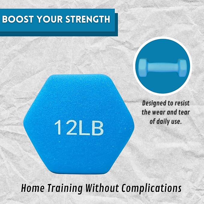 - 🔘2 DUMBBELLS FOR RESISTANCE TRAINING: Each dumbbell weighs 12 LBS, providing a total of 24 LBS in the set. Perfect for strength and resistance exercises at home or in the gym.