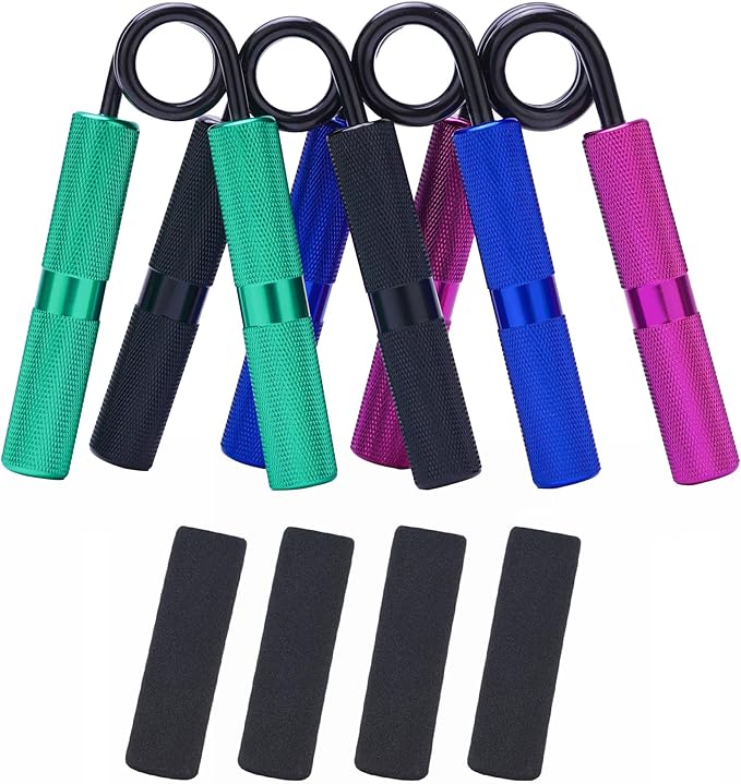 - Quality Material:The hand grip is made of high-quality aluminum knurled handle and carbon steel spring which are not easy to rust, non-slip and wear-resistant. The aluminum handles are strong and lightweight, durable and safe, it will not damage your hands and fingers, We also offer 4 foam handle covers,which will bring you an excellent exercise experience.