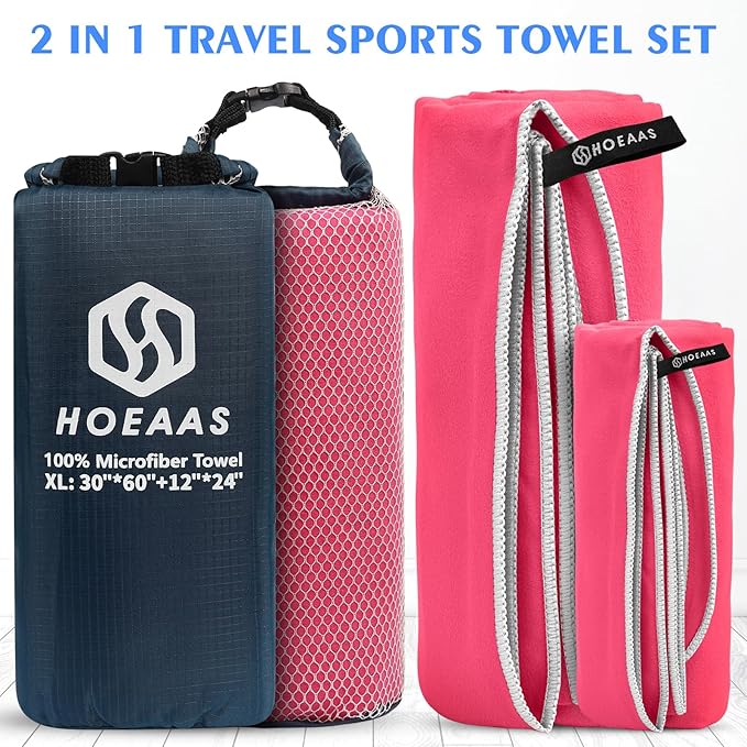 - GREAT OPTIONS & EASY HANG LOOP: Each HOEAAS microfiber towels with a hanging snap loop so it is convenient hanging for quick dry anywhere without blew away. S (2pcs 32 x 16 inch) used as face towel or workout towel. M (40 x 20inch+24 x 12inch) is perfect for sport towel to around your neck. L (48 x 28inch+24 x 12inch), used as bath towel or gym towels. XL(60 x 30inch+24 x 12inch) and XXL towel (72 x 32inch+24 x 12inch) is an ideal choice for yoga mat or beach blanket, perfect for pool and beach.