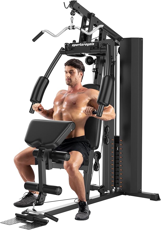 - 【All-in-One Home Gym】Get chest press, lat pulldown, low row, abs band, leg extension, preacher curl, core training, calf training, back extension, and mid-row capabilities – all in a single, convenient piece of home gym equipment. With over 50 possible exercises, elevate your fitness routine with a comprehensive workout experience.