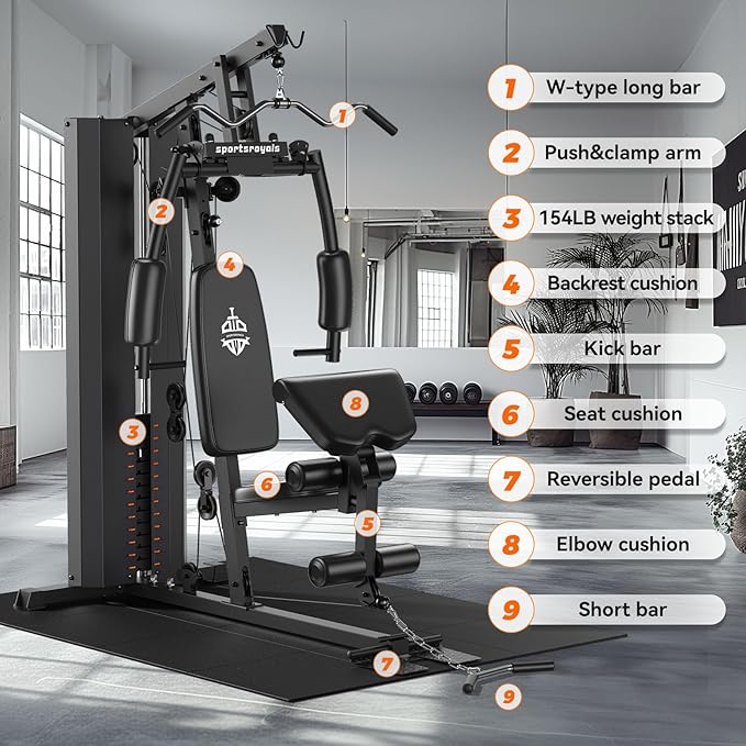 - 【154LBS Weight Stack】Adapt to your evolving strength levels effortlessly with the built-in 154LBS weight stack. Ideal home gym partner for super set and drop set, eliminating the need for time-consuming weight replacements. Focus on your workout without distractions.