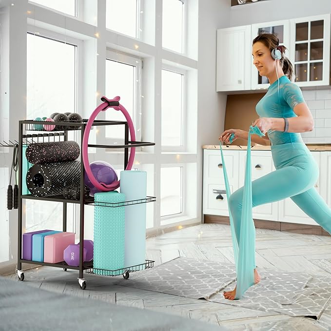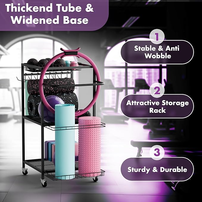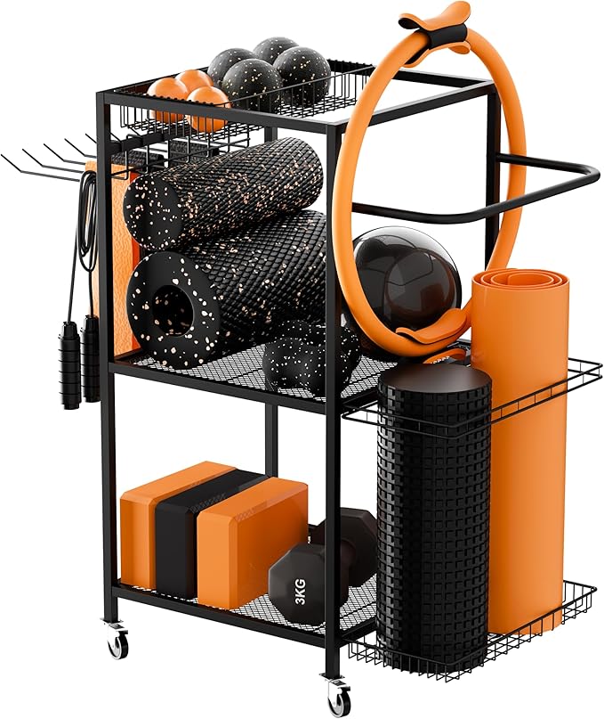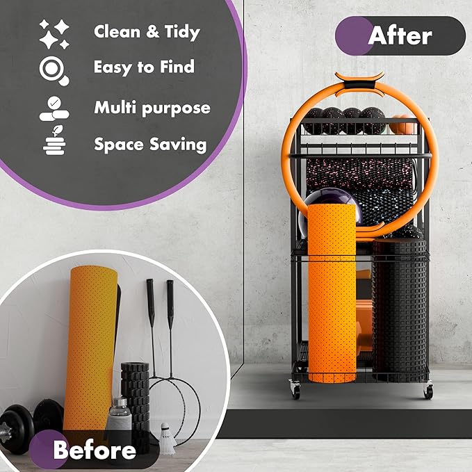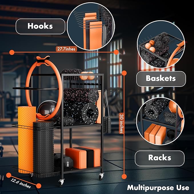- 💫 Complete Package - Our FitHQ Home Gym Workout Equipment Storage Organizer System comes with everything you need for an easy assembly: caster wheels (two with brakes for stability), foot pads for floor protection, a wrench, an allen key, and detailed instructions. Ideal for organizing your exercise equipment for home workouts, this fitness system ensures a clutter-free, and more efficient home gym environment.