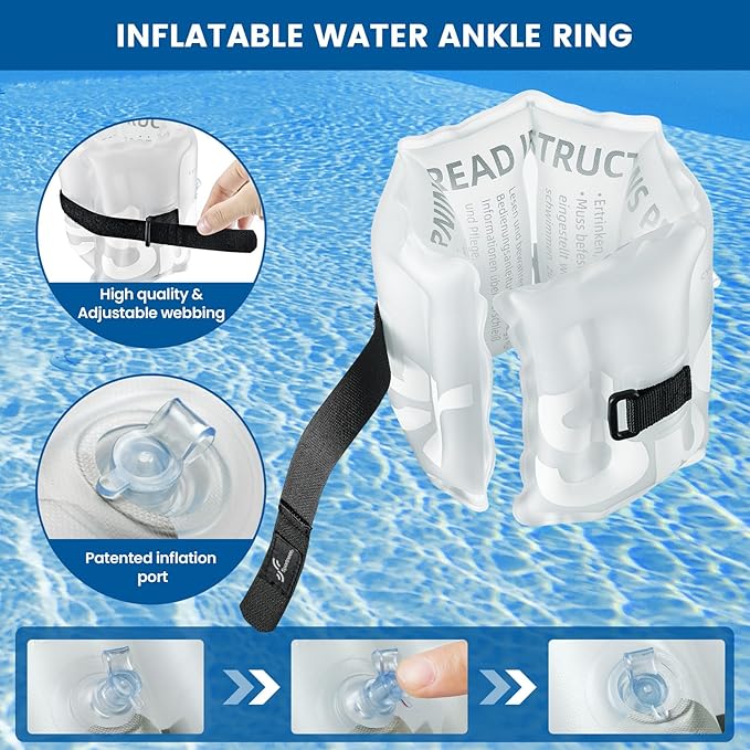 - Waterproof Adjustable Webbing: The Water Ankle Float features an adjustable webbing design, skin-friendly, which can be adjusted from 6-10 inches (16-26cm) range. And light weight, perfect for ankle and arm sizes.