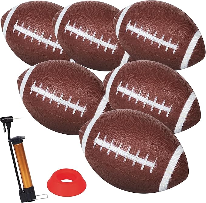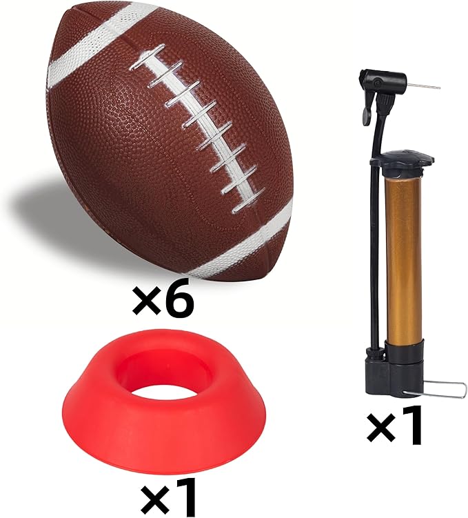 - Complete Football Set - High-quality 6 PCS 8.3" inflatable rubber footballs designed for kids,complete with a convenient pump and kicking tee,ensuring you have everything you need to start playing right away.