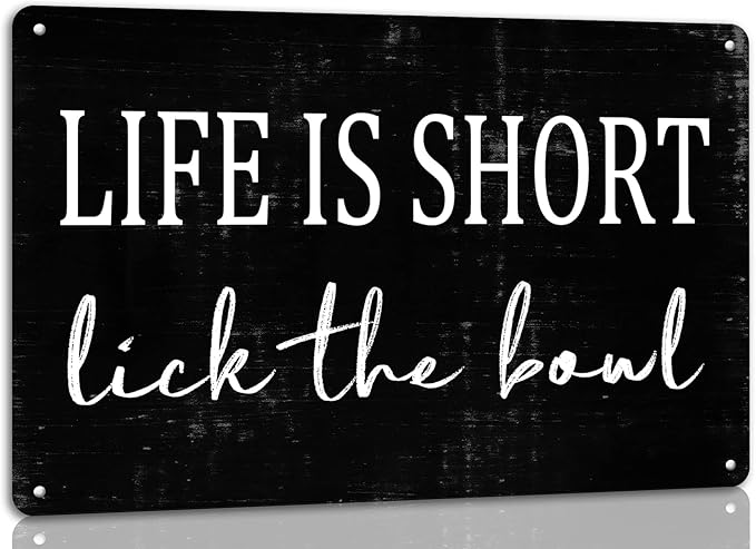 Life is Short Lick the Bowl Metal Tin 8x12 Inch