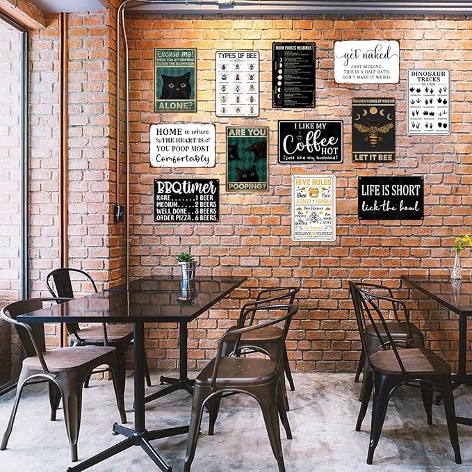 - Perfect decor——Wonderful metal sign vintage wall art pieces can be added to your bar, restaurant, kitchen, coffee bar, farmhouse, house or anywhere. Creating a vintage design style can be a great way to enhance the overall ambiance of your space.
