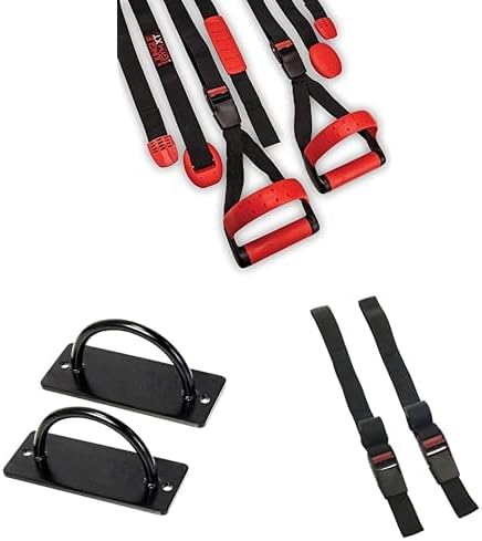 • Two non-scuff door anchors provide secure door attachment for the home door workout or office and loop-over cinch connection to bars, beams and tree limbs.