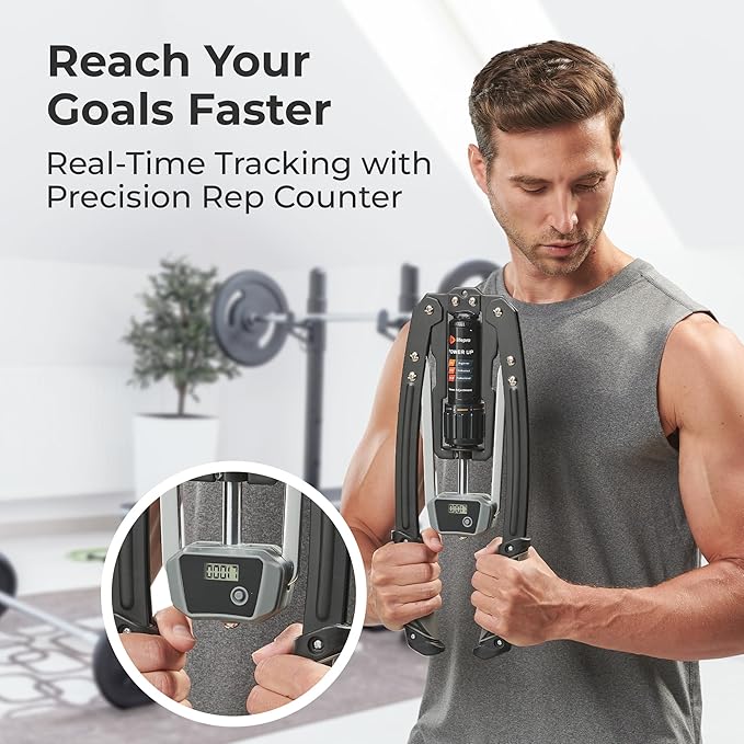 • WORK OUT SAFELY - Never worry about dangerous rebound or losing your grip on the arm strengthener & chest machine thanks to a workout-safe design, non-slip grips, & premium hydraulic mechanism.