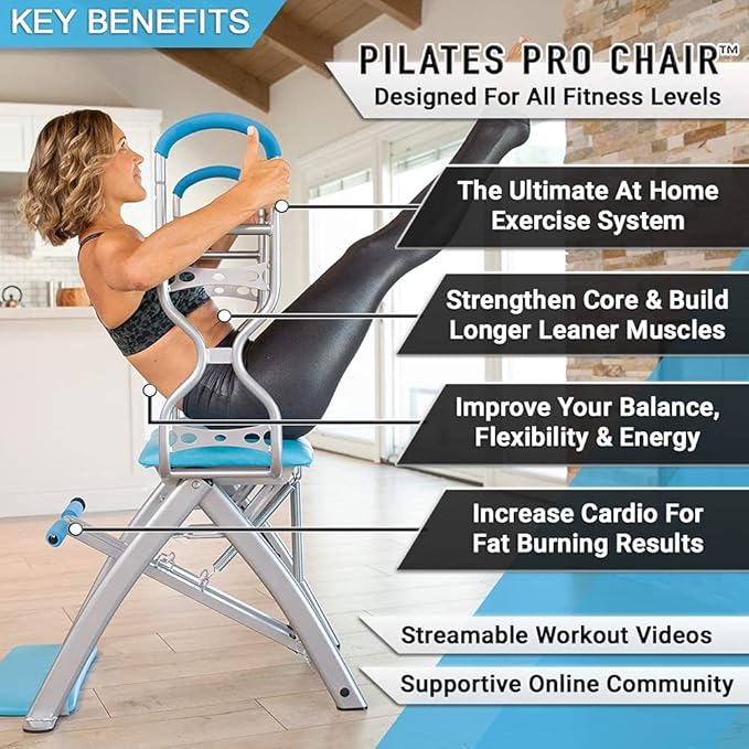 - PRO TRANSFORMER: Pilates Pro Chair is an all in one home gym to mix in with your yoga, ab resistance, workout bands, and mat Pilates workouts. No need for towers machines tables or personal trainers when it comes with digital access to 6 instructional workout videos.