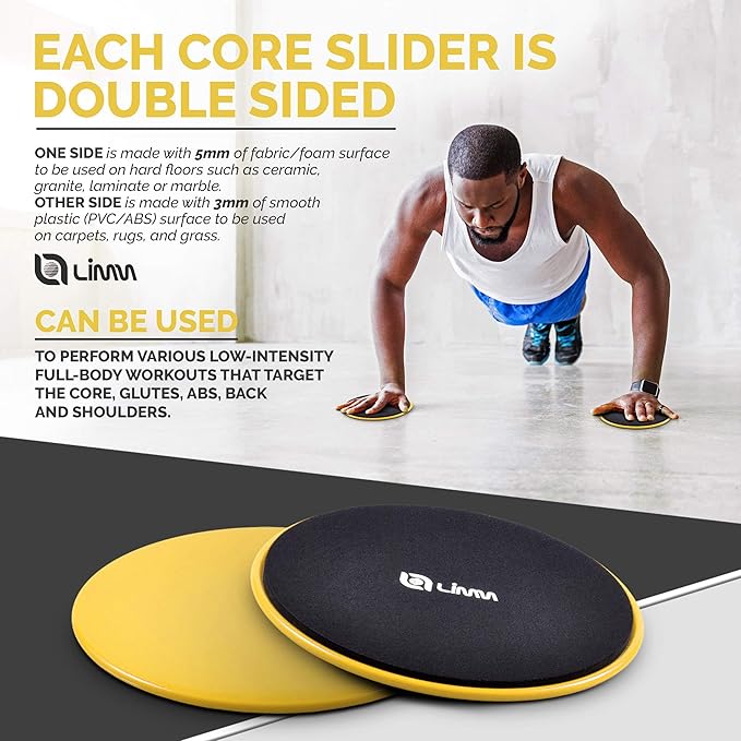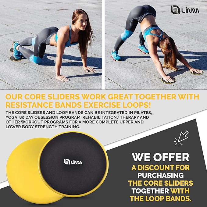 - CHALLENGE YOUR BODY IN NEW WAYS - Get the most out of these core gliding discs by using them with our best-selling resistance bands. These can be integrated into Pilates, yoga and others. Buy Limm Core Sliders together with Limm Loop Bands and get a discount upon checkout.