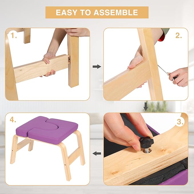 - [Stable and Durable] This yoga inversion stool is made up of birch frame and PU leather cushion, which is not only stable and wear-resistant, but also easy to clean, giving you a relaxed and comfortable yoga experience.