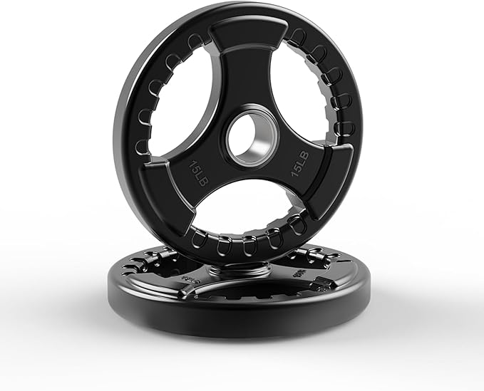 - Comfortable and Convenient: Each plate has 3 openings with strips on them for easy and secure grip when loading and unloading the weights. Labeled in LB for easy recognition.