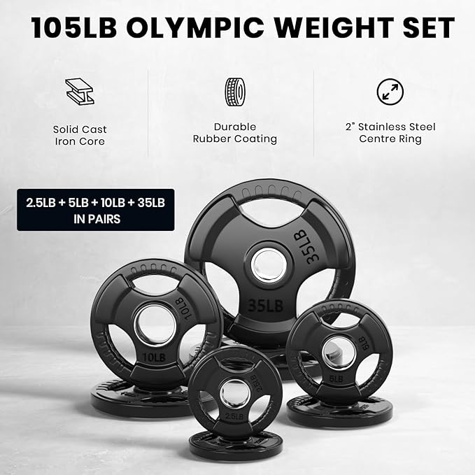 LIONSCOOL 2-Inch Rubber Olympic Grip Weight Plates (2.5-45LB), One