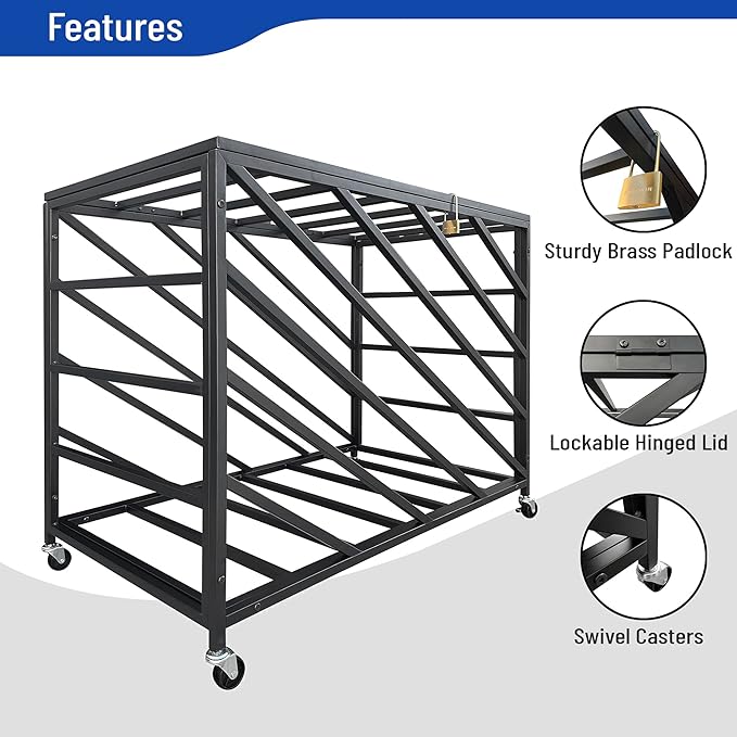 - SECURE LOCKING SYSTEM: The ball storage cage features a lockable hinged lid and comes with a sturdy brass padlock to keep your equipment safe from theft and neatly stored away.