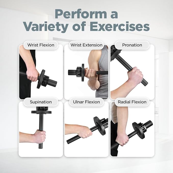 - Multi-Functional Workouts: Engage in wrist, core and full-body strength training by performing wrist flexion/extension, pronation/supination, ulnar/radial flexion, bent-over row, Romanian deadlift, wrist roll, squat clean and overhead press arm exercise equipment arm workout equipment.