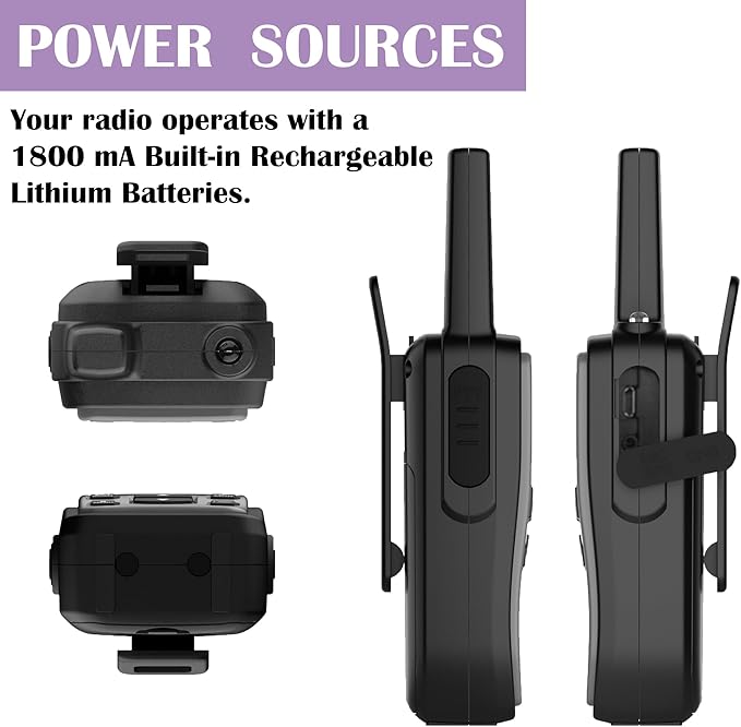 - Rechargeable Batteries: Each walkie talkie comes with a 2000mAh rechargeable battery pack, ensuring you have power when you need it. Charge them conveniently via the included Type-C USB charging cable.