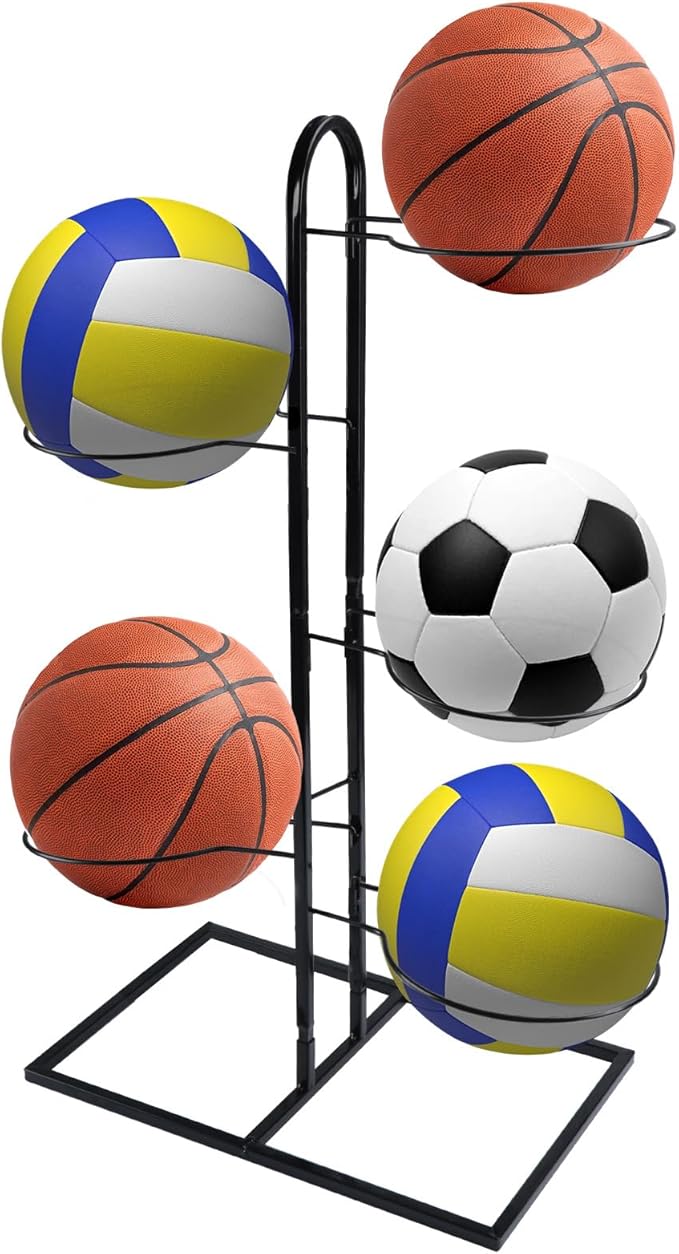 - ⚽WIDELY APPLICABLE: The basketball stand is ideal for indoor and outdoor use, the sports ball stand can be placed in various locations such as gym classrooms, living rooms, foyers, garages, gyms or sports facility entrances, garage sports equipment organizer for storing basketballs, footballs, volleyballs, yoga mats and other sports equipment, or as a display stand in a sporting goods store.