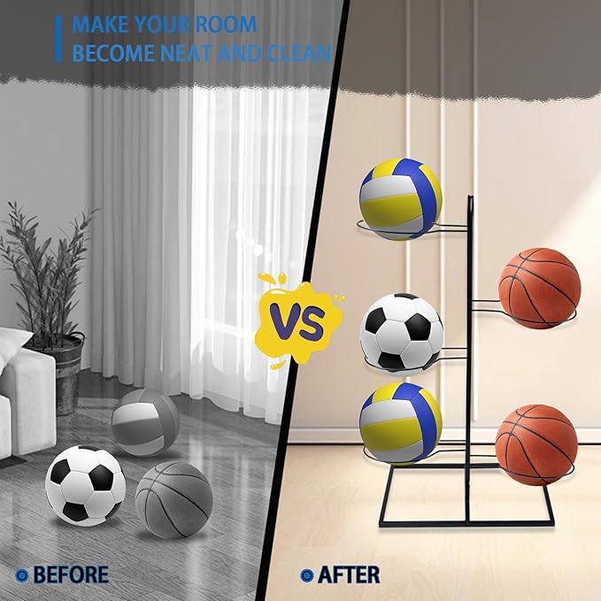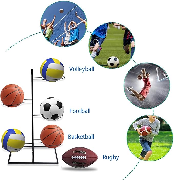 - 🏐PERFECT GIFT: Turn a messy room into an organized room with this sports ball storage that meets your storage needs and basketball display stand is also a great gift for sports-loving kids, friends, colleagues, family, boys and girls perfect gift. Keep your sports gear tidy and within reach with this innovative storage solution.