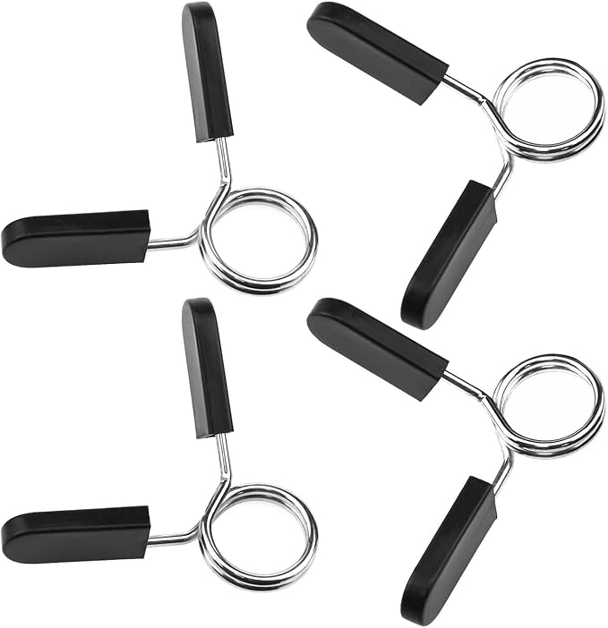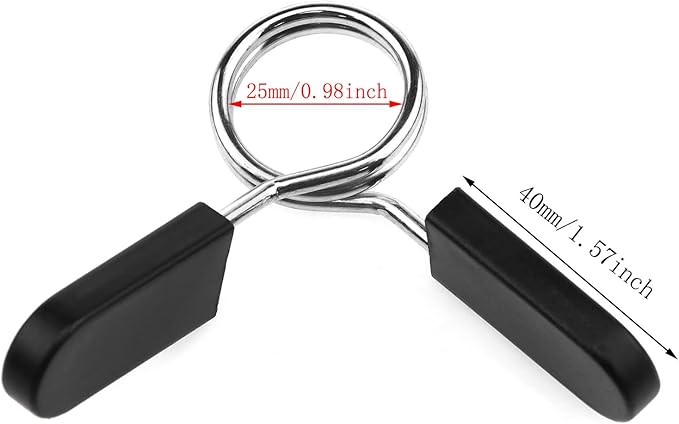 - Standard barbell bar clamps springs hold firmly, gripping the bar and keeping it tight so you don't have to worry about it moving around to prevent the weight from slipping off the bar.